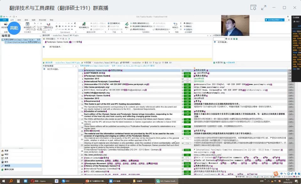高乾老师通过屏幕分享展示翻译工具的使用