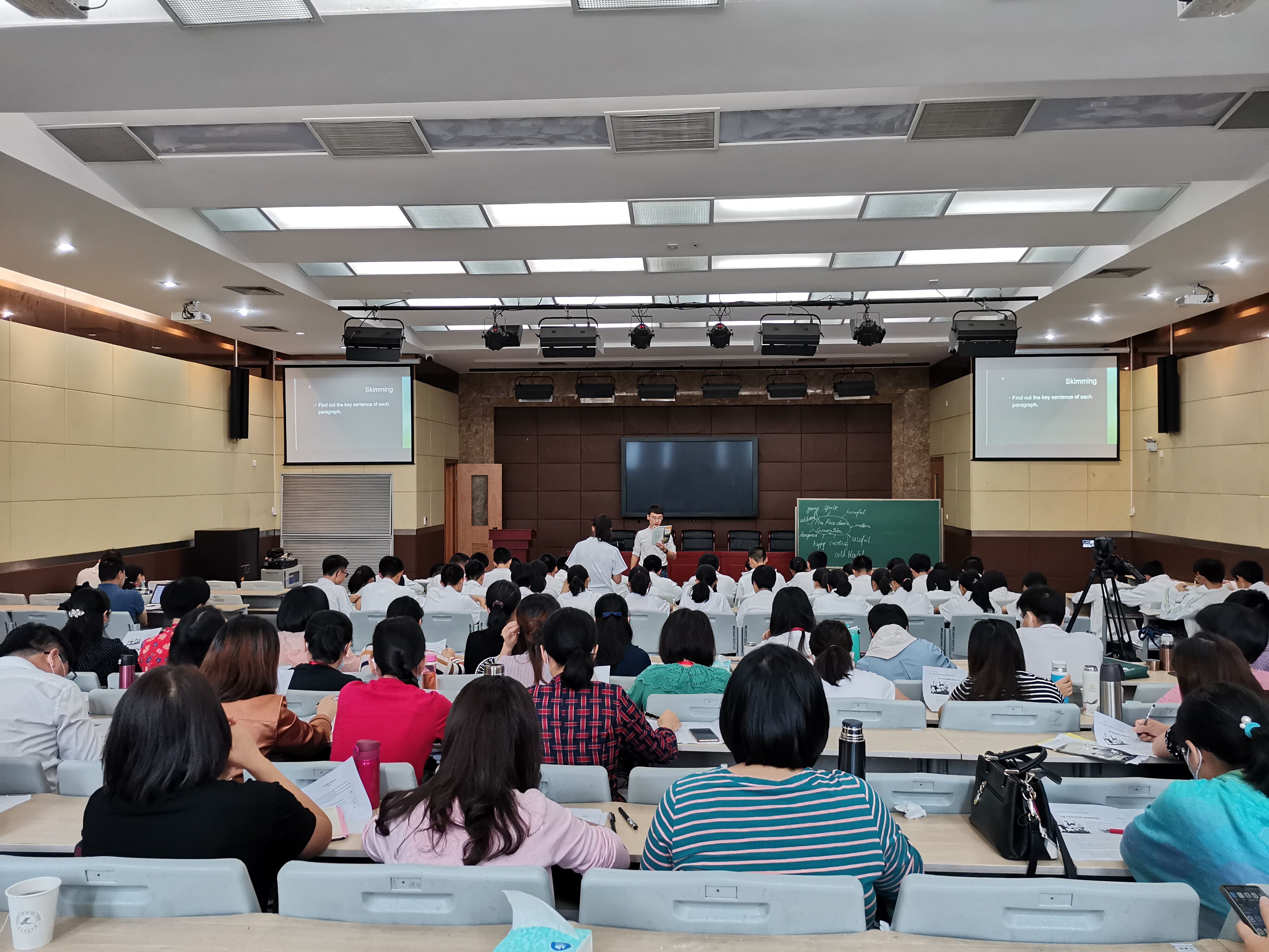 首先是跟随姜发兵指导老师,进行听课、备课、教案的记录和整理、学生作业的批改反馈等任务。在姜老师的指导下,一遍遍进行教案的修改提高,在实践中学习如何安排英语课堂。其次,也积极参加学校举办的英语教研活动,了解学军中学英语组的教学相关计划、观摩优秀公开课、以及聆听教学经验分享会等。除此之外,加入到相关的大型英语活动的组织,例如学军中学在本周举办的高二年级组单词大赛(Spelling Bee), 日本色情片 研究生协助参与活动的组织,并担任单词朗读老师。