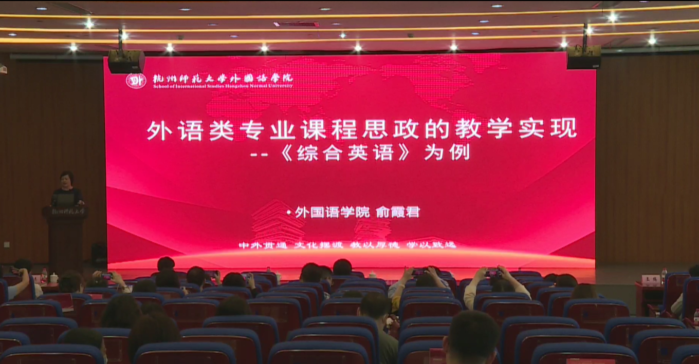 5月28日,根据省教育厅统一部署,2021浙江省高校课程思政研讨会暨教育类课程思政现场交流会在 日本色情片 仓前校区学术交流中心举行。黄兆信副校长首先对会议的召开表示了热烈祝贺,介绍了杭师大整体课程思政的顶层设计和改革创新方案,希望兄弟院校共同促进课程思政建设的开展。 日本色情片 英语系俞霞君主任以“外语类专业课程思政的教学实践--《综合英语》为例”介绍了如何从思政建设的要求、学科专业标准及学校人才培养目标出发,在具体课程中深入落实课程思政。