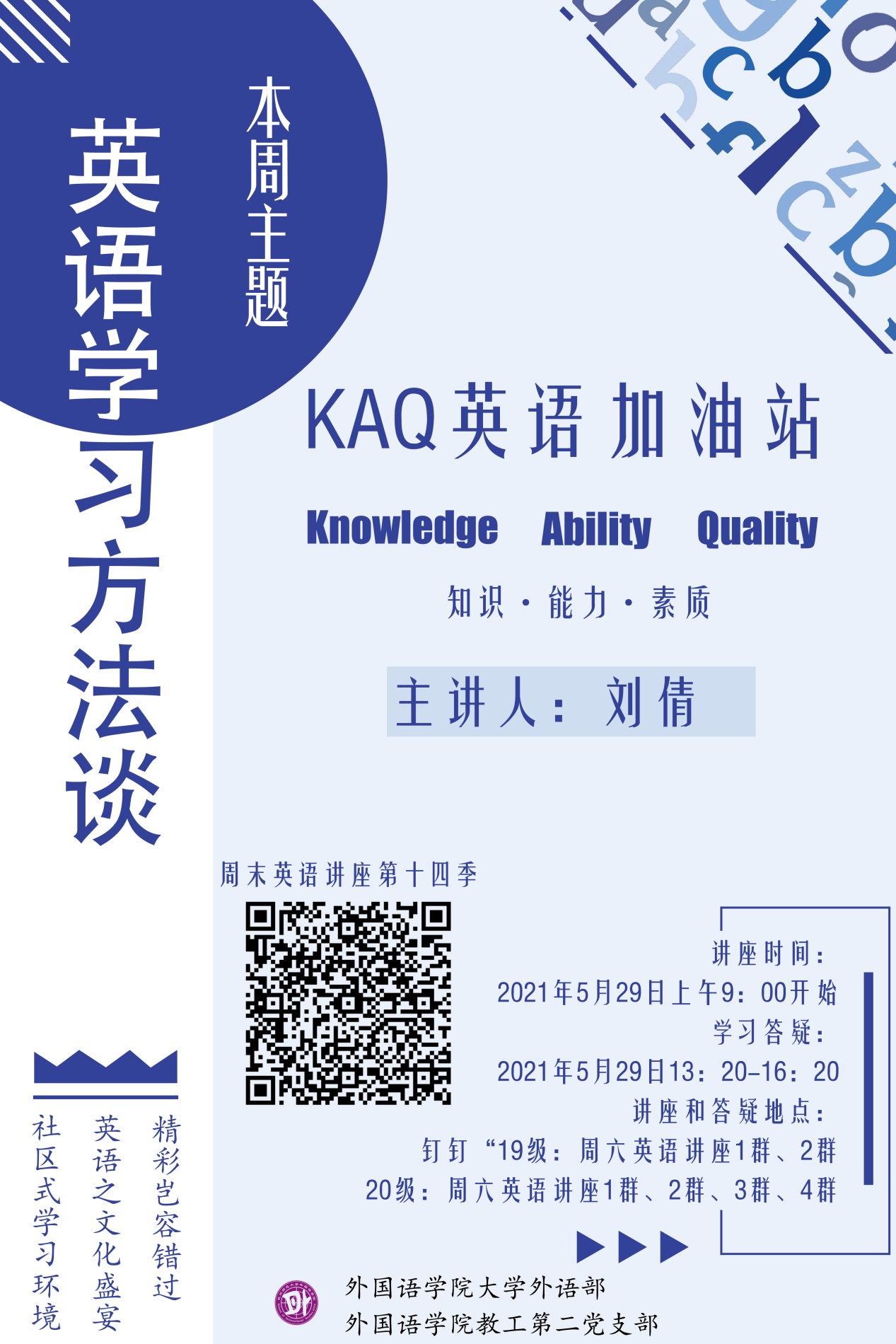 - 大外部第十五季周末英语公益讲座圆满收官