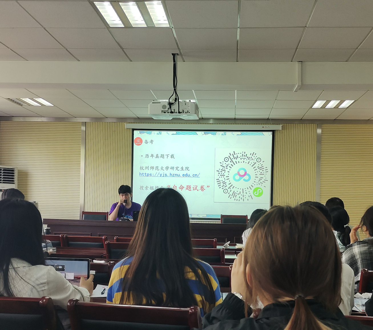 来自外国语学院的英语语言文学、日语语言文学、学科教育(英语)、外国语言学及应用语言学、比较文学与跨文化研究、语言传播、英语笔译专业的学生代表对自己就读的专业进行了具体的讲解,介绍了各个专业的专业考试科目和导师,分享了自己的考研经验和建议。为了更好的帮助同学,学生代表还推荐了专业考研对应的参考书目和准备方法,鼓励同学们善于利用网络资源学习。这让在座的同学受益匪浅。