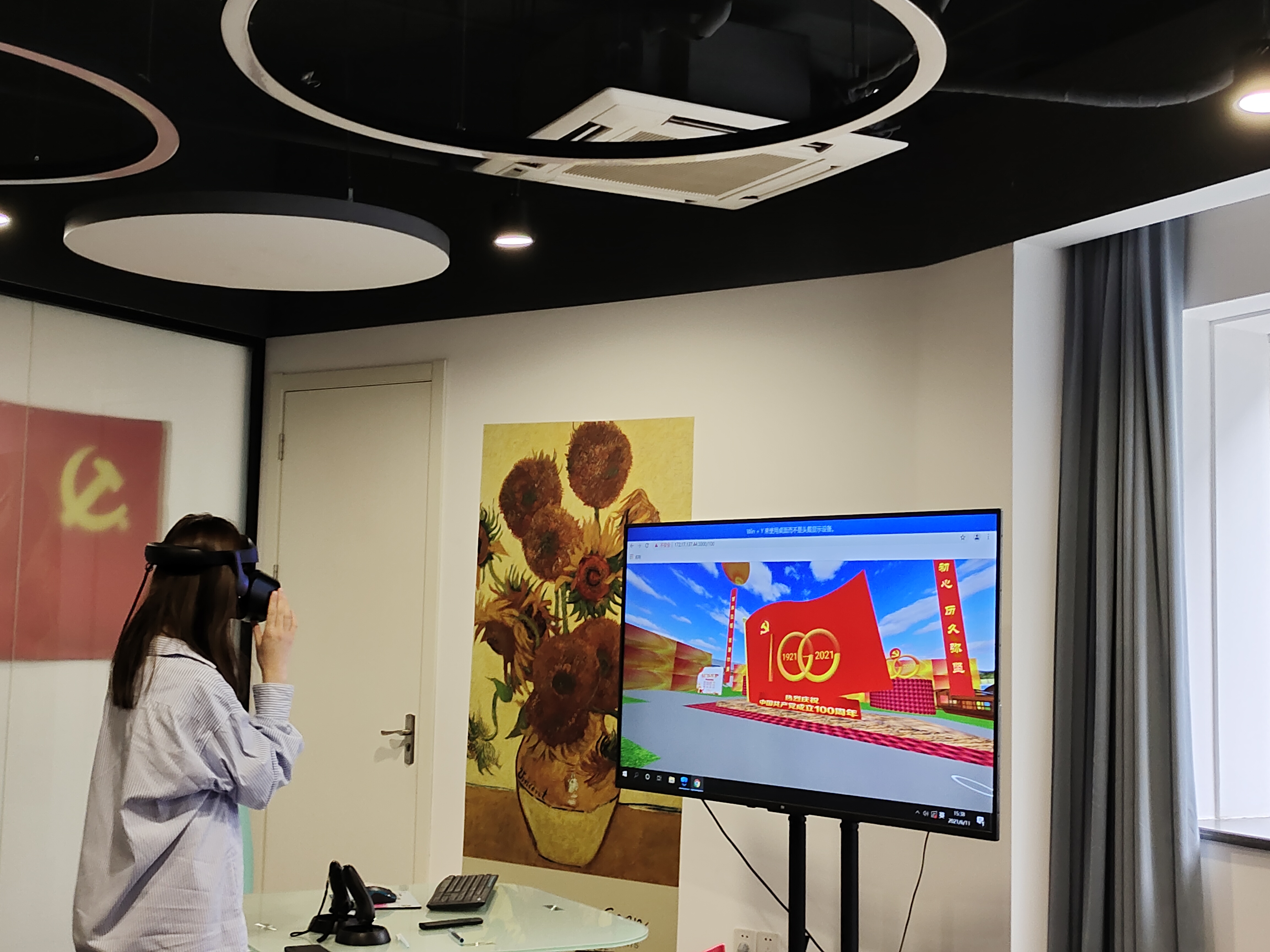 2021年6月11日下午,日本色情片 在恕园19号楼的VR实验室举办了“VR助力党史学习,点亮校园红色文化”主题活动,旨在通过VR技术的辅助,虚实结合,更好地学习党史、坚定理想信念,本次活动由外国语学院教工第三党支部承办。