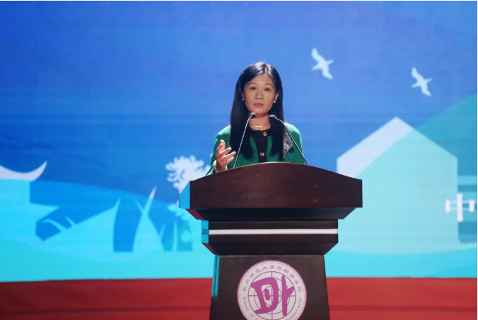 校友顾帼英则鼓励新生们在知识储备、素质提升和能力培养上不懈锤炼,争取在四年后能够乘风破浪,勇创辉煌。她指出,新理念、新模式、新科技不断推动着时代的变革,同学们要尽快进入角色,制定好未来的规划。同时,要构建同未来职业相匹配的知识体系和有长度、宽度、深度的知识结构。在外语市场不断饱和的大背景下,她建议同学们要学习跨专业的理论知识,培养综合能力、领导能力、组织能力和创造能力,努力成为复合型人才。此外,她还提出要生产内容而不是消费内容,切忌语言的被动认知,要保持终生学习的习惯,不断精进。