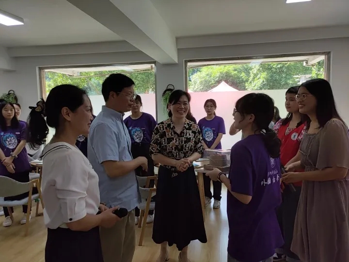 结营仪式主要有学长交流会和校园导览两部分组成。活动期间,正值校党委副书记应飚一行检查下沙校区迎新和开学准备工作。应书记来到现场与师生进行了亲切交流,并为当天生日的营员送上祝福。应书记肯定了新生干部们辛勤付出、无私奉献、积极进取的精神,并鼓励大家再接再厉,在接下来的新生报到中做好服务工作,真正发挥训练营中的所学所识,发扬师大精神,展现外院风貌。