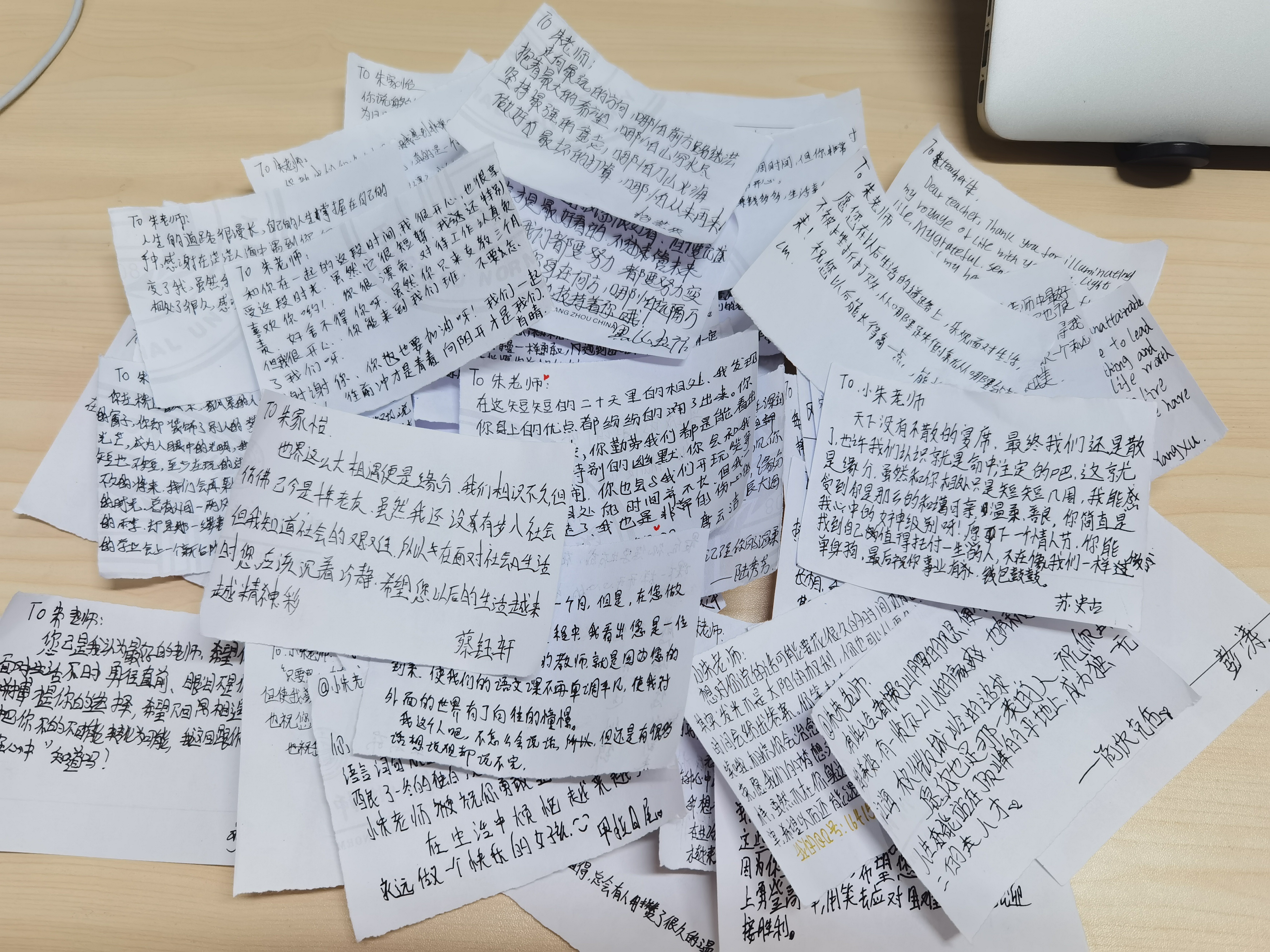 出发前的我很惶恐,因为我不是师范方向的英语专业学生,没有写过教案,也没有给中小学生上过课。所以,出发前的我担心自己哪里出差错耽误了孩子们的学习。然而,到了当地,所有顾虑一扫而空。孩子们的灿烂笑容和炯炯有神的眼睛在告诉我:哪有这么多的按部就班,只要怀揣热忱之心,真心相待,边学边干,孩子们就愿意承认你是好老师,愿意上你的课,愿意完成你的作业。回来之前,我为9.2班的学生们手写中考祝福,希望他们在今年6月份中考中能够脱颖而出、金榜题名,考上自己理想的高中。
