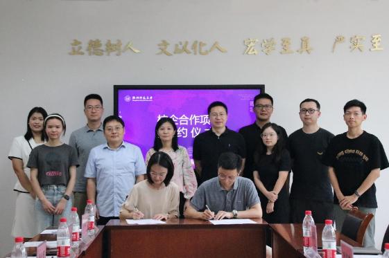 7月27日,外国语学院与华数传媒网络有限公司在仓前校区举行校企合作签约仪式,双方将开展学院“非遗国际播报团”社会实践项目的深度合作。华数传媒网络有限公司副总裁卓越、内容媒资部总经理叶克俊、内容媒资部总经理助理周荣杰、运营服务部经理沈亦乐、“良工造物”栏目运营人员季晨,院长周敏、院党委副书记娄丹华、MTI教育中心常务副主任高乾、朝鲜语系金龙军教师、大学生社会实践团队成员代表参加签约仪式。会议由茹姿韵老师主持。