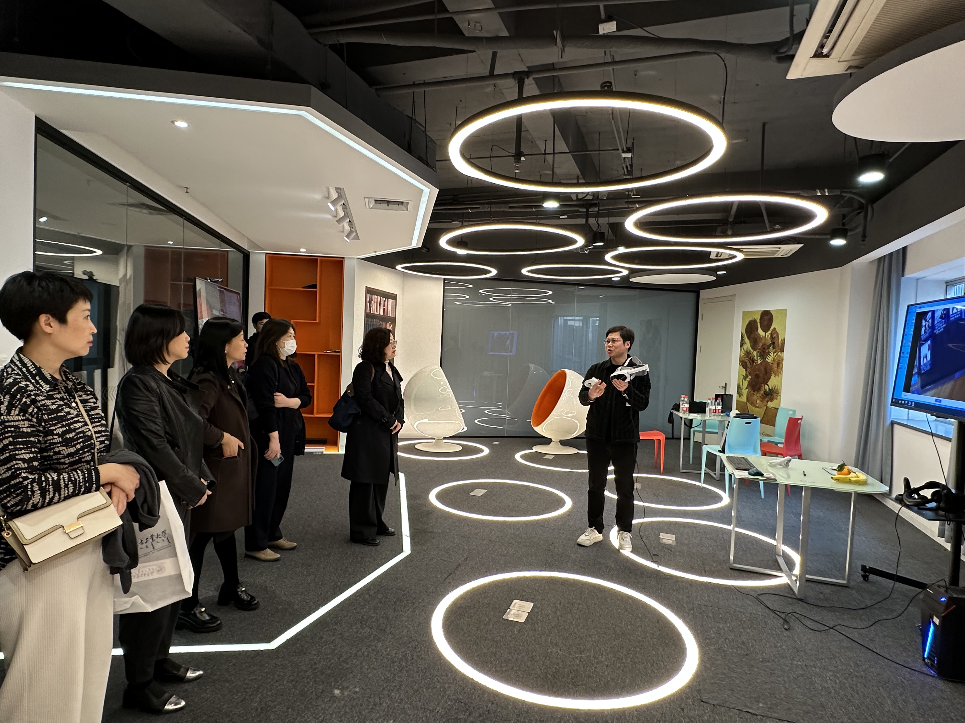 交流会结束后,两校调研人员分别走访参观了学院文化走廊、VR外语实训中心和多功能实验室。