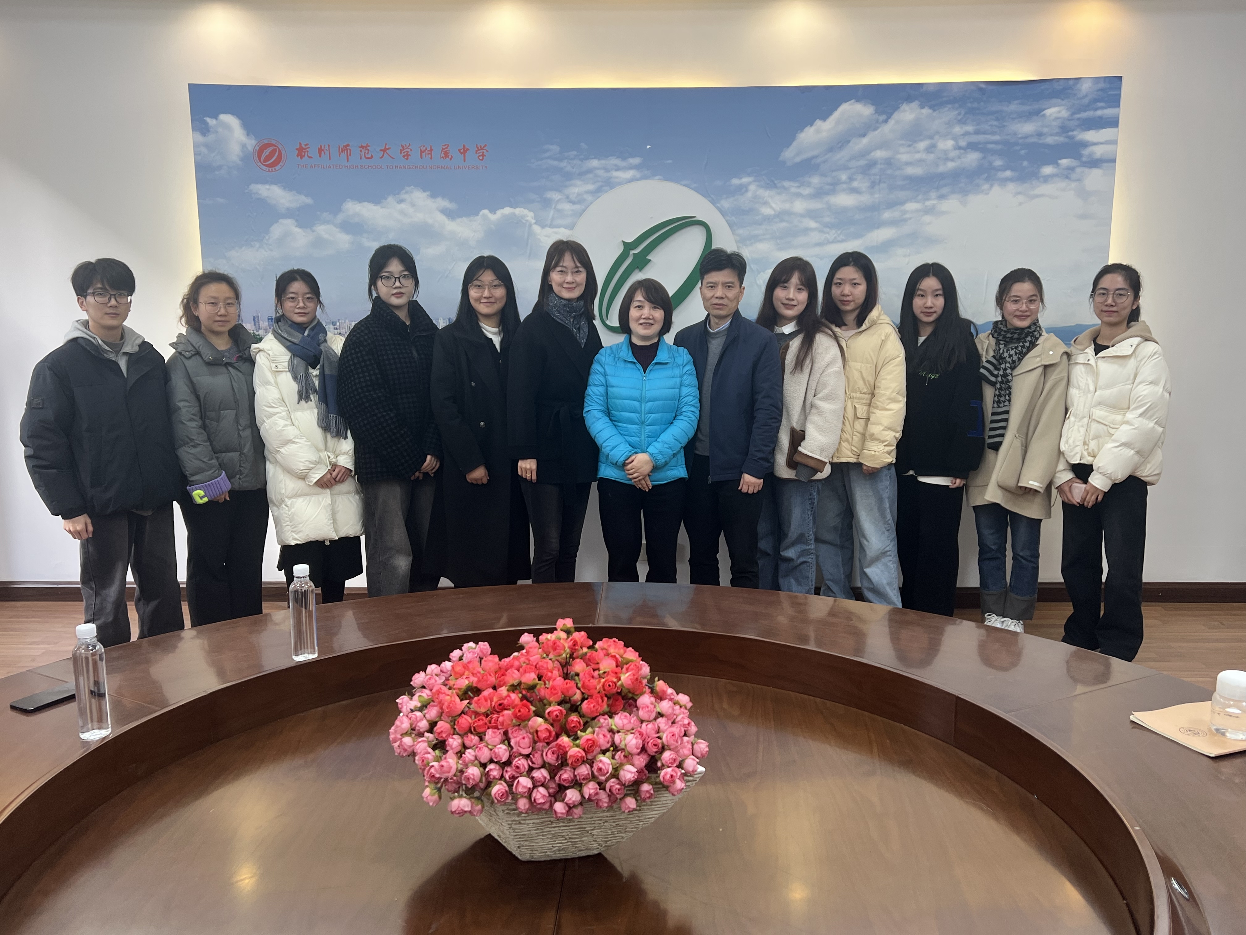 12月6日上午, 日本色情片 潘春雷书记、娄丹华副书记赴杭师大附属高级中学与杭州十三中教育集团,亲切慰问了20级英语实习组同学们。
