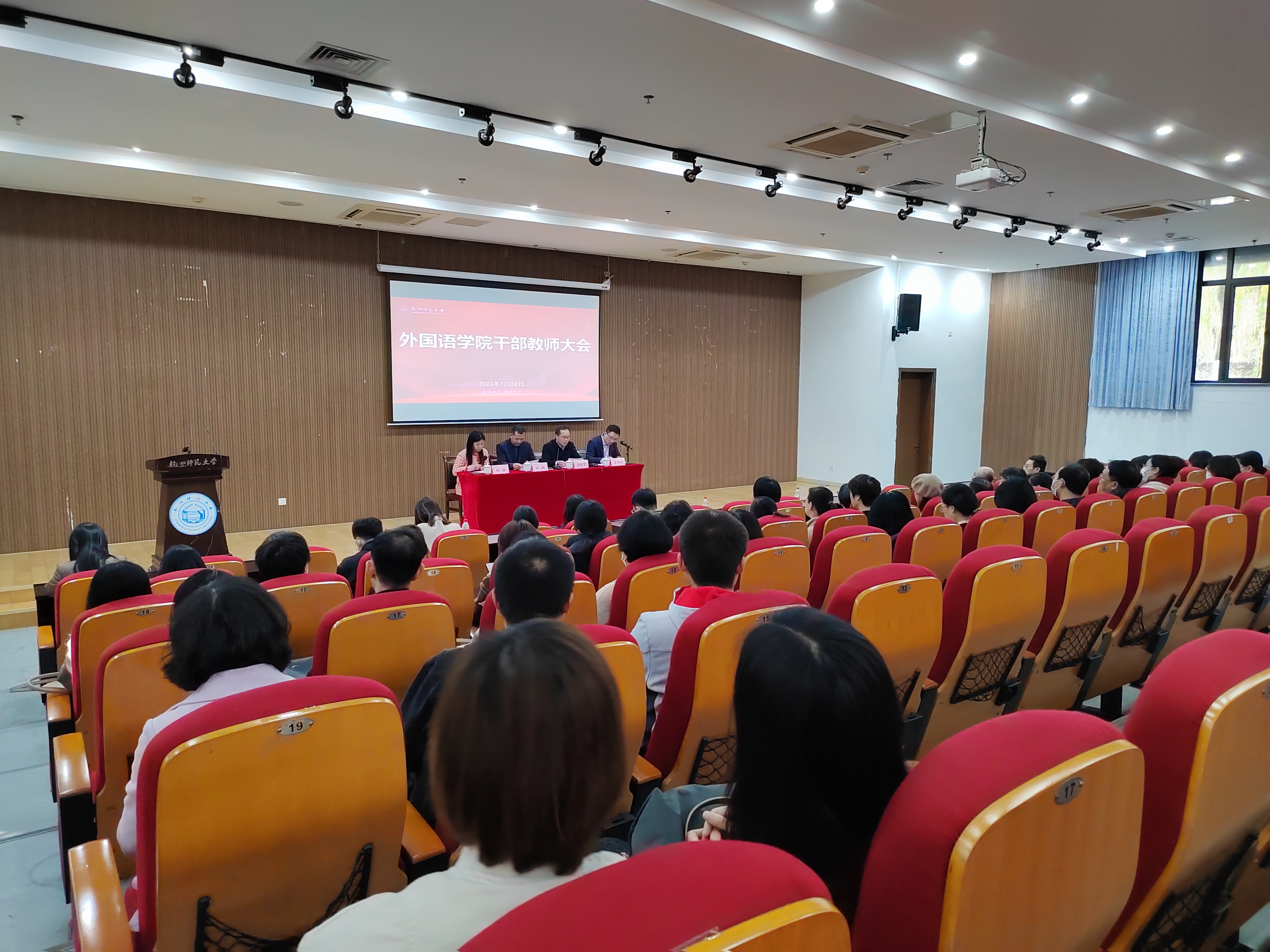 12月8日上午,外语学院召开干部教师大会,宣布学校党委关于学院领导班子调整决定。校党委副书记杨政,校党委委员、组织部部长胡绍华出席会议。会议由院长周敏主持,全院教职工参加会议。