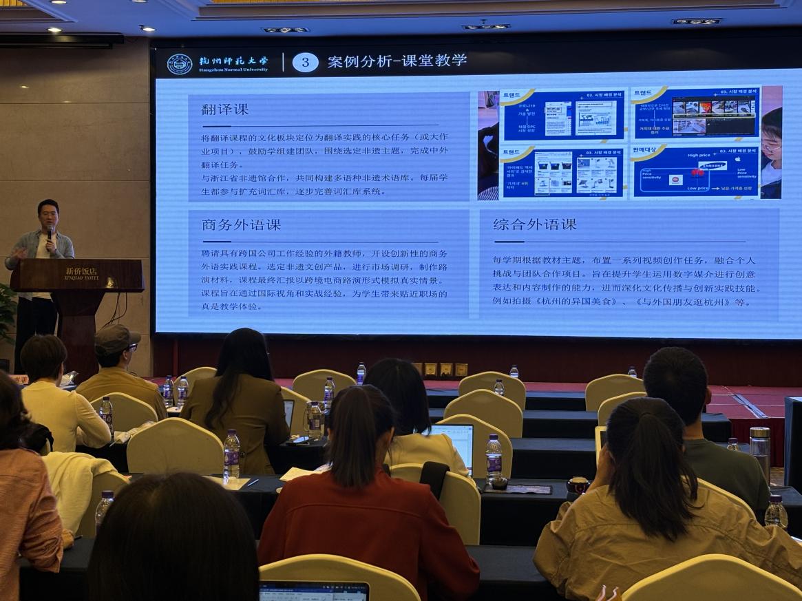 5月12日,浙江省高等教育学会大学外语分会和高等教育出版社共同主办的“2024年浙江省数字赋能外语教学交流会”上,我院朝鲜语系金龙军老师以“数字时代背景下外语专业跨文化传播人才培养的产教研创模式构建与实践”为主题进行了精彩发言,就数字时代下外语教学的革新与实践分享了前沿观点和成功案例,赢得了与会专家和同行的高度评价。