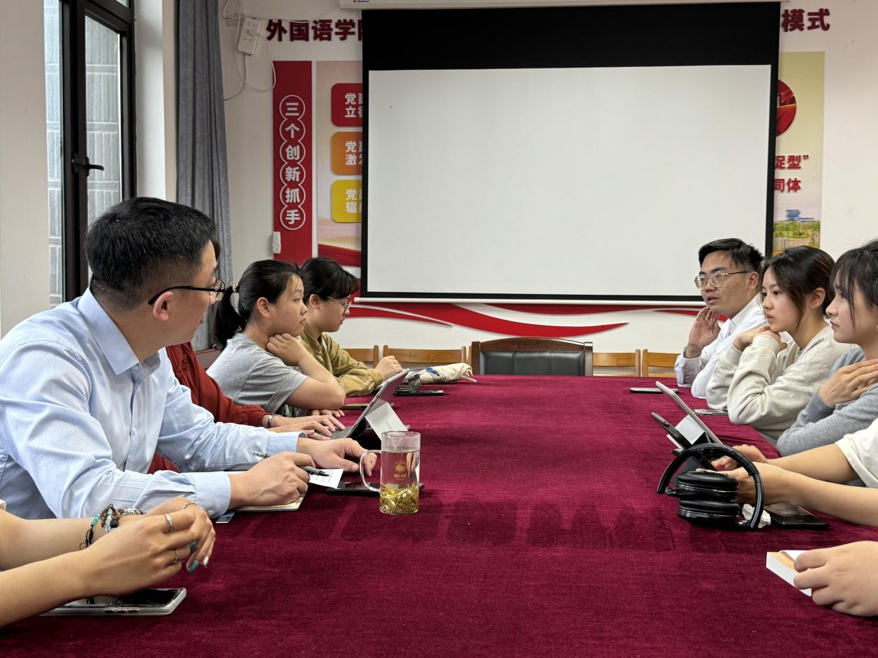 5月11日,外国语学院书记座谈会在仓前校区19号楼312室举行。学院党委书记袁智杰、党委副书记娄丹华、辅导员李可人和部分仓前校区学生代表共同参与本次座谈会。