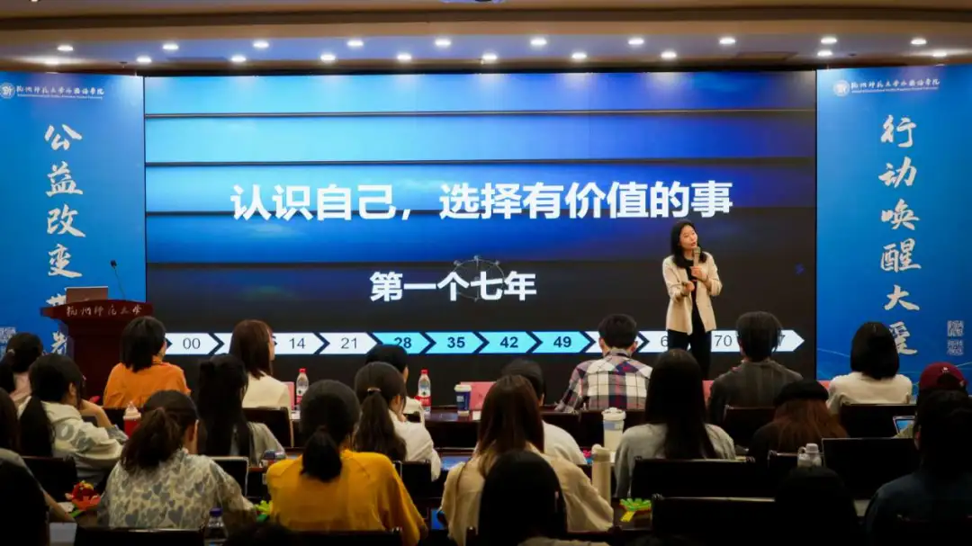 于秀红女士开展以“职业成长与转变:从商业到公益的旅程 ”为主题的讲座。于理事长请同学们计算自己的“时间账户”,指出同学们即将开启职业年轮,开始关键的七年。于理事长通过回顾自己从商业到公益领域的职业生涯变迁,提醒同学们认识自己、选择有价值的事,鼓励学生们根据专业和兴趣确定职业方向。于理事长认为在职业生涯的探索阶段,要做好目标管理,大胆走出舒适圈,打破固有思维束缚,充分挖掘个人潜力。另外,于理事长还分享了在国际平台开展慈善活动的经验,建议同学们持续学习,拥抱变化。