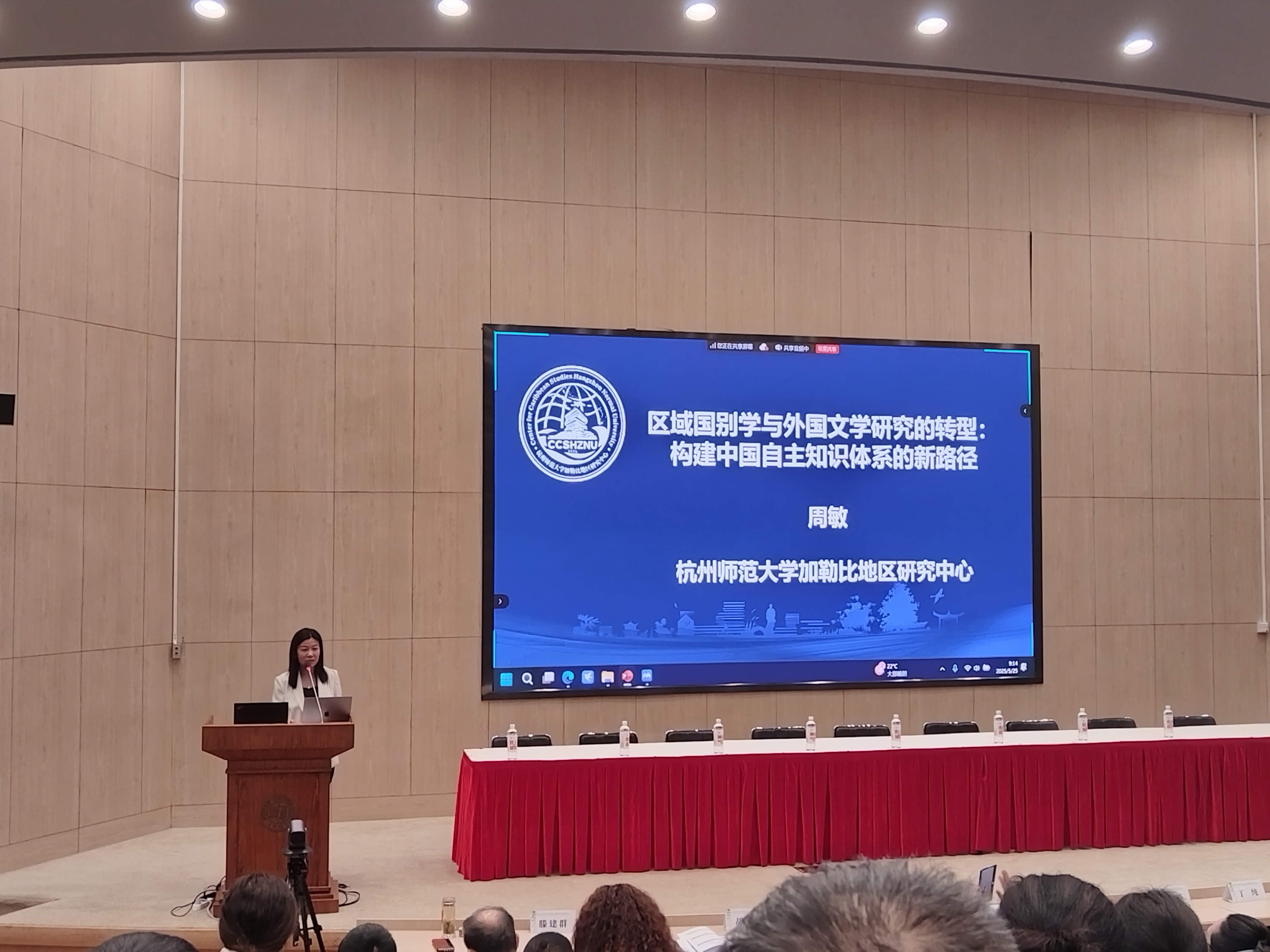 在本次会议上,周敏院长发表了题为“区域国别学视阈下的外国文学自主知识体系构建”的主旨发言。她认为在外语学科面临巨大挑战的今天,学科转型势在必行,而区域国别研究将成为外语学科发展的“新赛道”。她强调,区域国别研究应立足于语言、区域与专业融合,服务知识体系建设与国际视野人才培养的双重目标。随后,周院长以 日本色情片 加勒比地区研究中心为例,介绍了该中心的建设情况,并分享了 日本色情片 加勒比研究团队的实践探索心得。周院长的发言引发了现场众多学者的共鸣,得到与会专家们的一致认可。