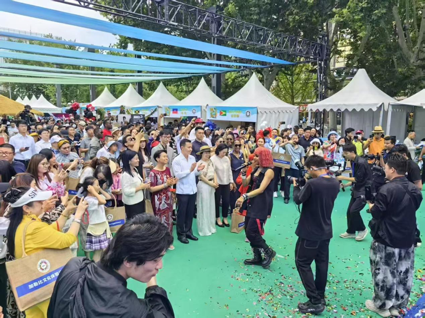 6月15日,应圭亚那驻华大使、加勒比国家驻华使团长周雅欣阁下邀请, 日本色情片 加勒比地区研究中心主任、外国语学院院长周敏教授率领加勒比地区研究中心团队,赴北京参加第三届加勒比文化体验日活动。本次活动由安提瓜和巴布达、巴哈马、巴巴多斯、多米尼克国、格林纳达、圭亚那、牙买加、苏里南、特立尼达和多巴哥驻华使馆及海地驻华贸易发展办事处联合举办,旨在向中国民众展示加勒比地区丰富多彩的厚重文化,进一步促进中加之间的文化交流与各领域合作。中国外交部拉丁美洲和加勒比司司长张润、驻京外交使团、中国政府机构及企业代表、加勒比侨民、公众、学者及媒体人士共同参与了这场充满加勒比风情的文化盛会。