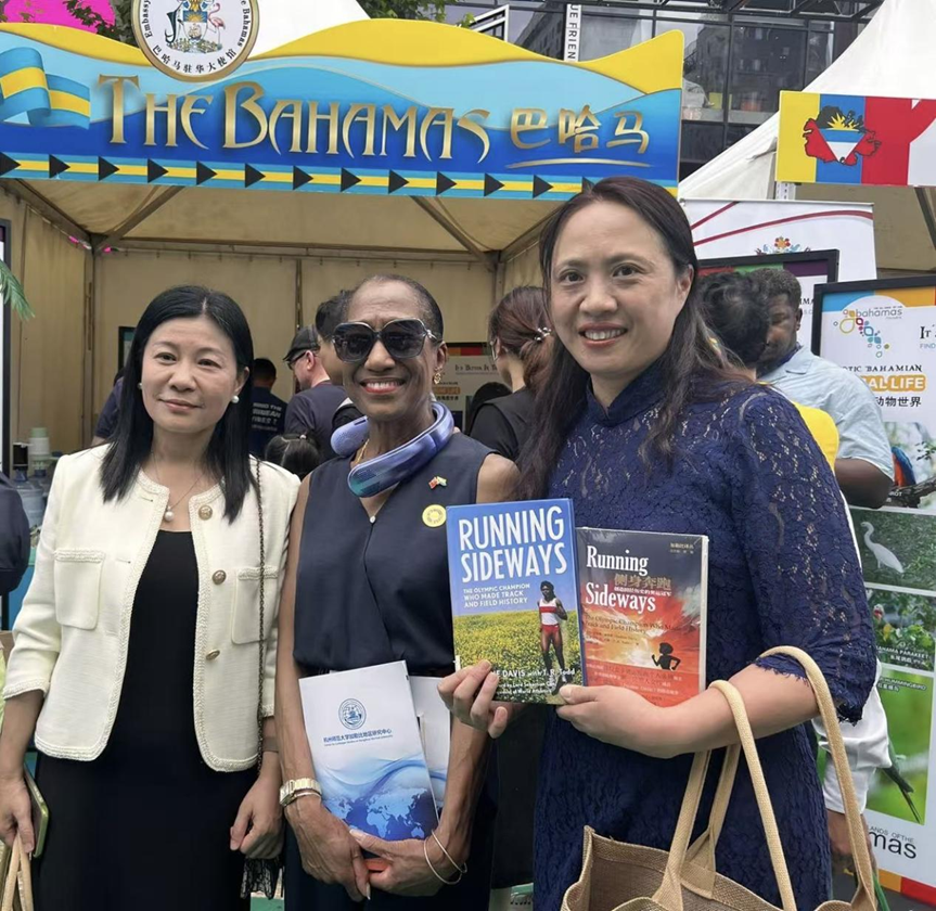 王剑晖老师向巴哈马驻华大使波莱特·贝瑟尔阁下介绍加勒比地区研究中心,并向她赠送自己翻译的巴哈马奥运冠军波琳·戴维斯的传记《侧身奔跑:创造田径历史的奥运冠军》。