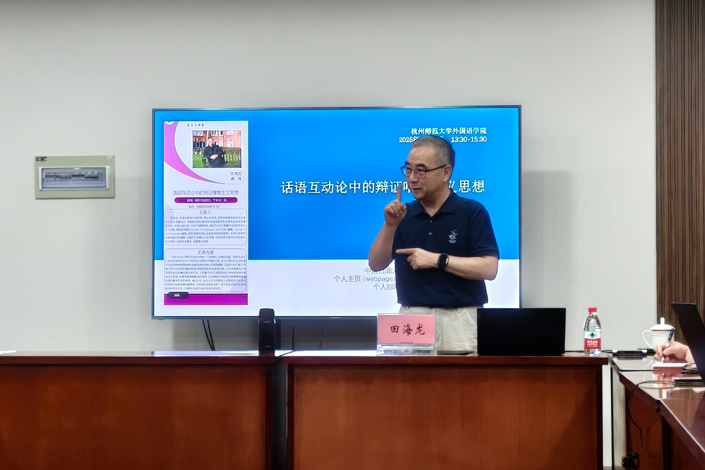 田教授特别强调,话语互动体现了唯物辩证法的基本观点:事物是运动变化的,而非静止不变的;事物之间是普遍联系、相互作用的。以唯物辩证法为指导,话语互动研究可以揭示其内在机制及新话语的生成过程,从而凸显话语主体的社会认知在互动过程中的作用。