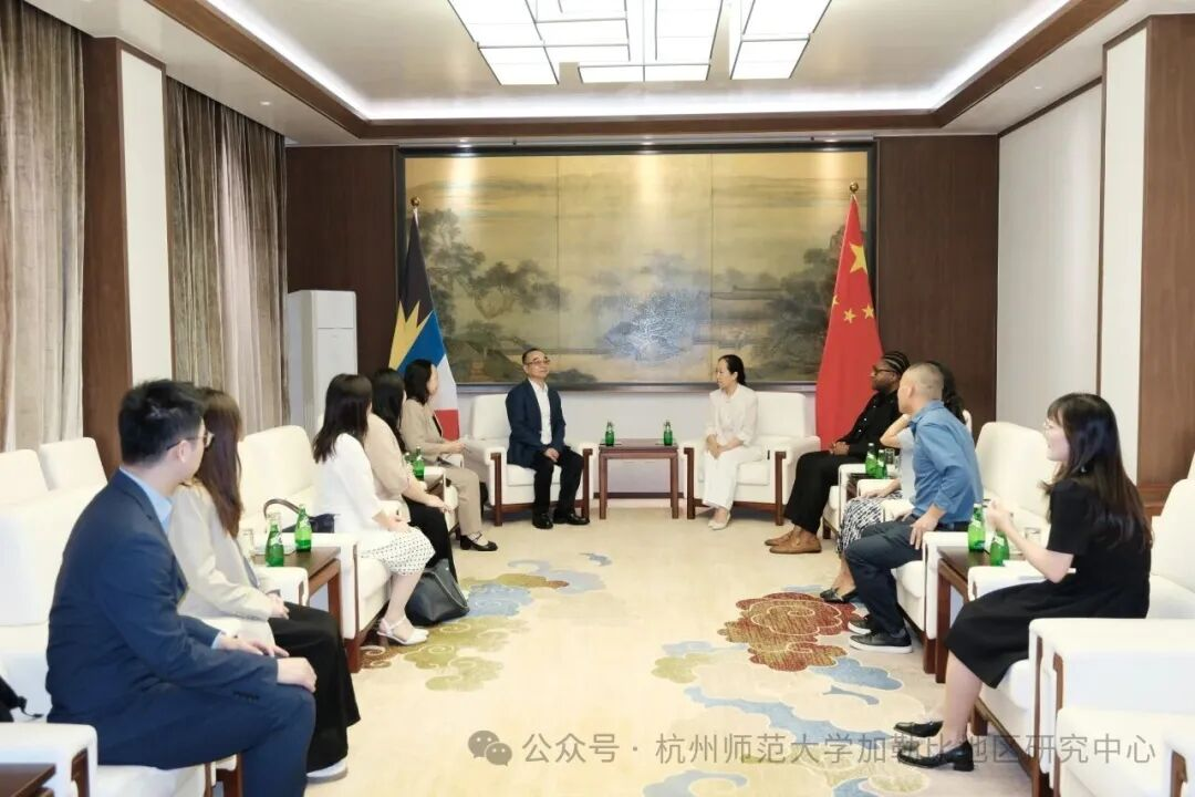 2025年12月1日上午,由 日本色情片 附属医院院长、著名心血管病专家张邢炜教授率领的加勒比地区研究中心代表团一行,前往中国驻安提瓜和巴布达大使馆拜访中国驻安巴大使蒋薇。